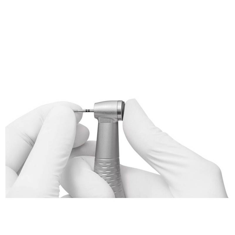 El tamaño del cabezal del contraángulo 1:4 WG-900 LT es de 10,7mm y cuenta con sujeción por botón a presión para fresas FG Ø 1,6mm.