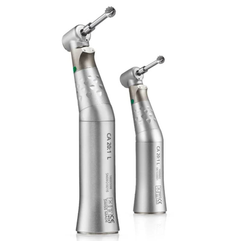 El contra-ángulo reductor CA 20:1 L Micro-Series con luz, ajuste con pulsador, irrigación externa está indicado para su uso en implantología y cirugía oral.