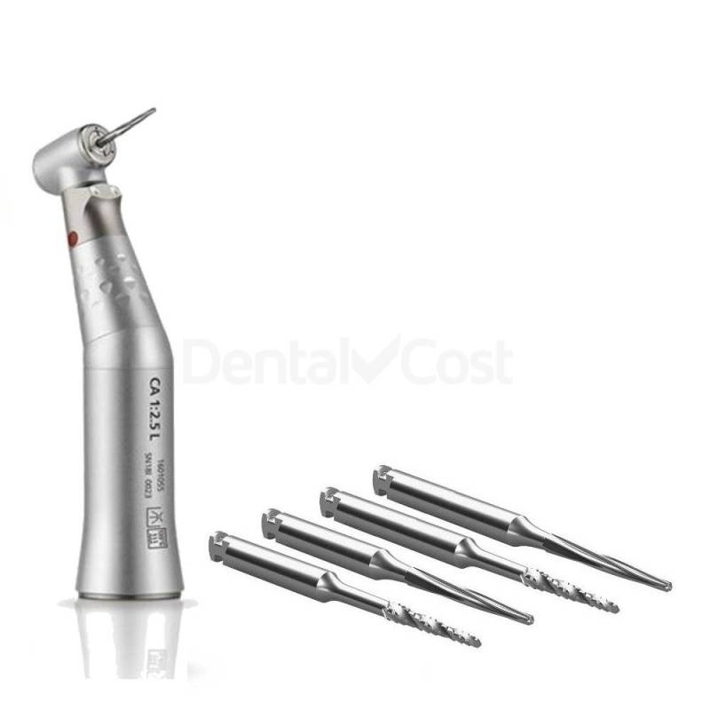 El Kit del contraángulo Bien Air 1:2.5 L MS se acompaña por 4 de fresas de inicio: 2 fresas Zekrya (L 28mm y XL 34mm) y 2 fresas Lindermann (L 28mm y XL 34mm)