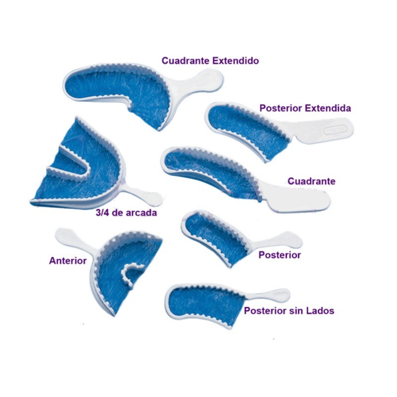 - Cubetas parciales, cuadrante, para impresión dental con un fina gasa intermedia.