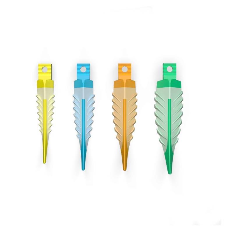 Sus suaves aletas retentivas se pliegan con suavidad hacia abajo durante la inserción de la cuña y para volver a su posición cuando se despeja el espacio interproximal, bloqueando las cuñas Strata-G™ en su posición.