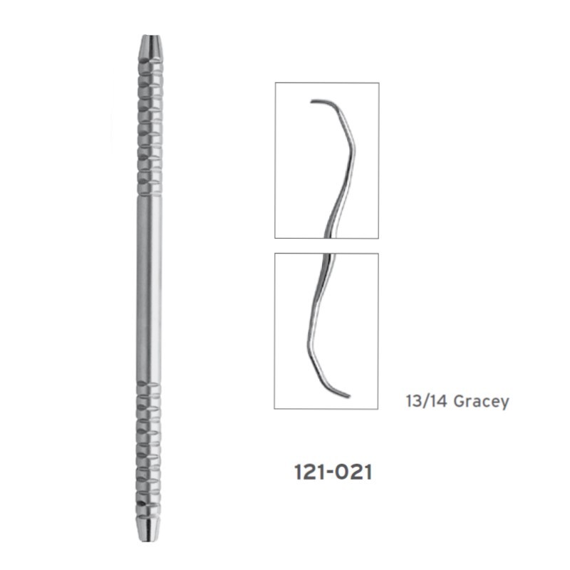 - Cureta Gracey 13/14 para trabajar la cara distal de los dientes posteriores.
