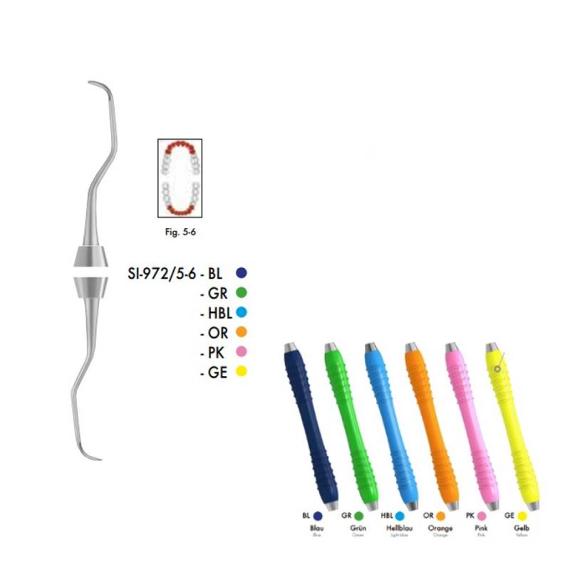El instrumento dental SI972/5-6 de Carl Martin es una cureta Gracey 5-6 anterior indicada para el raspado y alisado radicular de los dientes anteriores y premolares en sus caras libres y laterales.