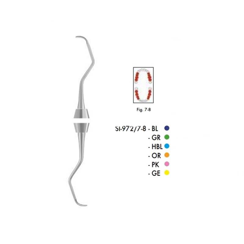 El instrumento dental SI972/7-8 de Carl Martin es una cureta Gracey 7-8 ligeramente angulada, con una parte activa de mayor longitud para acceder con más facilidad a las zonas difíciles.