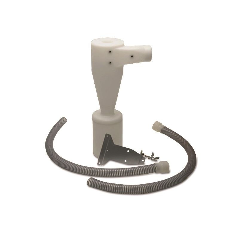Diseñado y fabricado en España, el decantador de polvo de Mestra es un aparato sencillo en polipropileno de alta resistencia, que se acopla a la entrada de una unidad de aspiración estándar y efectua un prefiltrado de partículas de polvo.