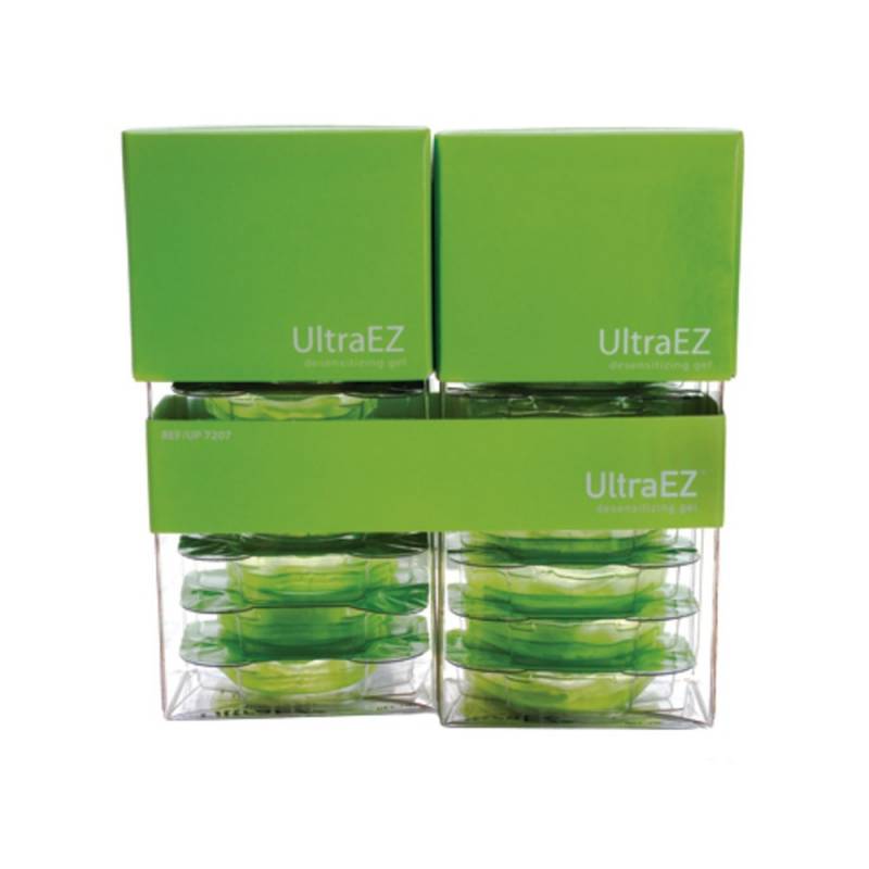 UltraEZ de Ultradent es un gel desensibilizante viscoso, adhesivo y de liberación sostenida, con nitrato de potasio al 3 % y con ion fluoruro al 0.11 % en peso por peso.