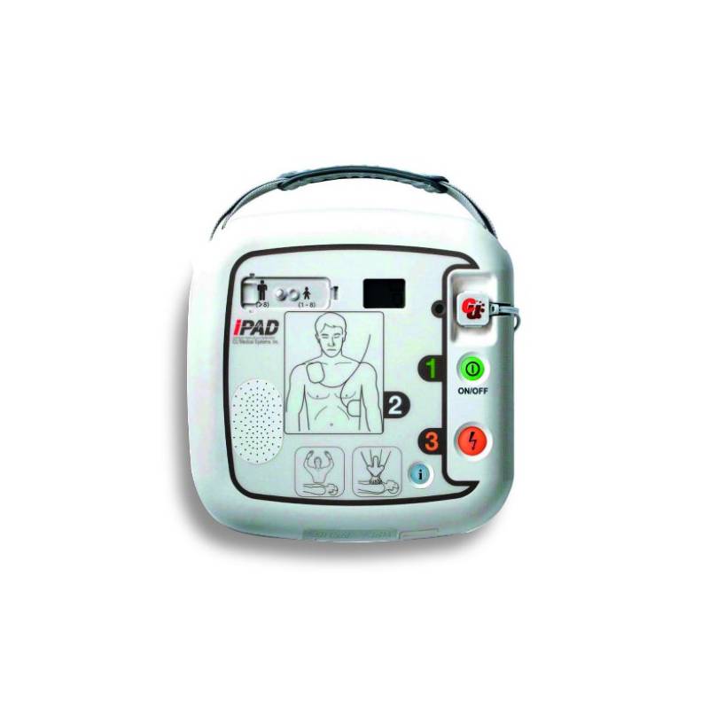 IPAD CU-SP1 de Technoflux, es un desfibrilador semiautomático para usuarios con un mínimo de entrenamiento. Sus parches tienen la posibilidad de ser usados tanto en adultos como en niños. Indicador de estado en pantalla con mensajes de voz detallados e indicadores luminosos. Con sistema de detección de CPR inteligente. Y aviso al usuario si detecta proceso de reanimación.