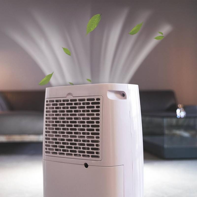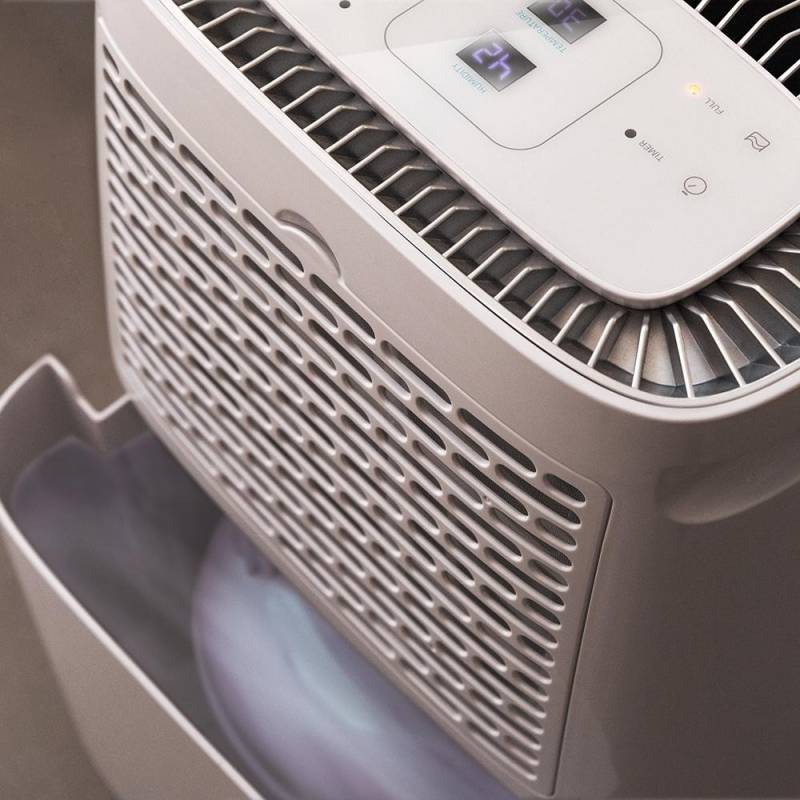 Deshumidificador que capta del ambiente 10 litros al día de humedad lo que aumenta el bienestar de las personas y evita la aparición de hongos y manchas características de la humedad.