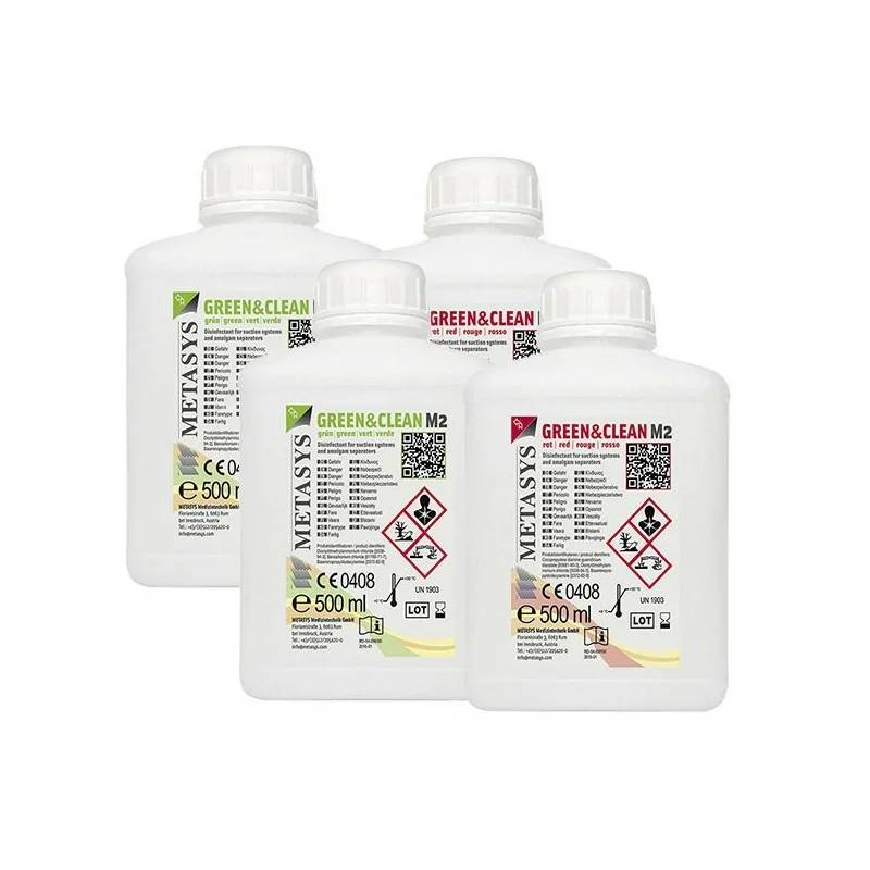 GREEN & CLEAN M2 METASYS - LIMPIADOR DESINFECTANTE PARA ASPIRACIÓN DENTAL - REPOSICIÓN 4 BOTELLAS