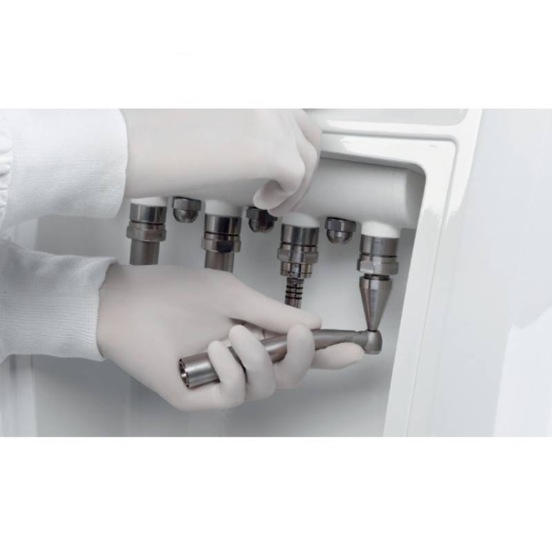 Mediante el soporte correspondiente se podrá limpiar y tratar también el mandril, eliminando todos los residuos de polvo y suciedad presentes en la cabeza de la pieza de mano.