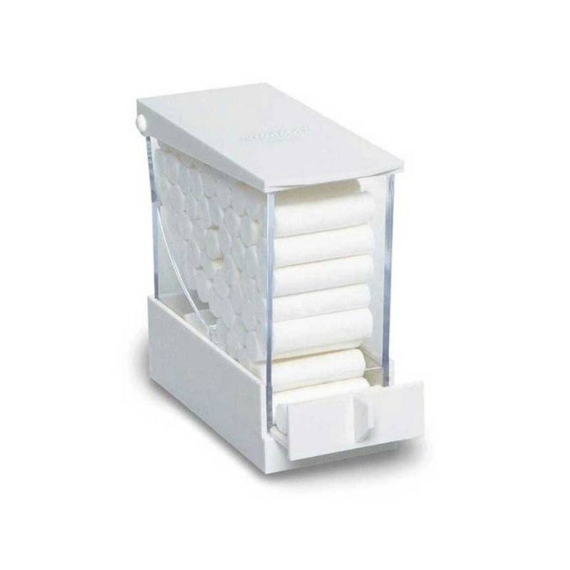 - Cómodo y práctico dispensador de rollitos de algodón.