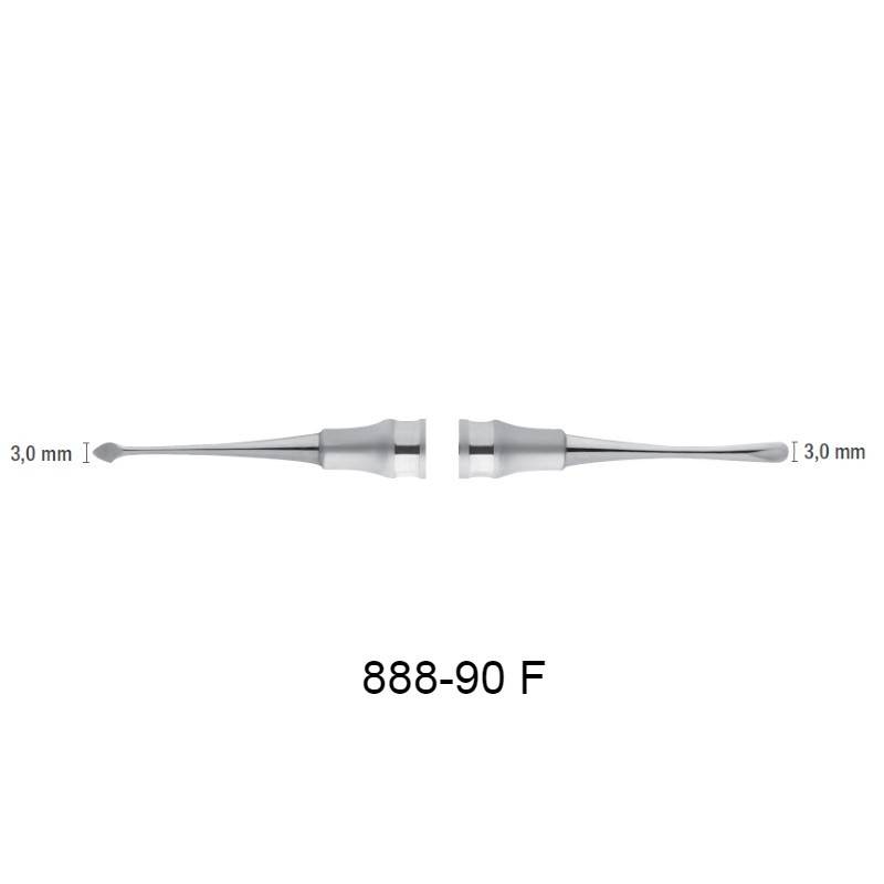 - 888-90 F - Elevador Periosteal Palti - 17,1 cm - 3,0 / 5,0 mm - Su parte activa con forma de lanza permite el desprendimiento de la papila así como el desprendimiento de la cresta de la encía marginal. La solapa mucoperiostal se puede desprender con suavidad gracias a su extremo opuesto con forma de pala.