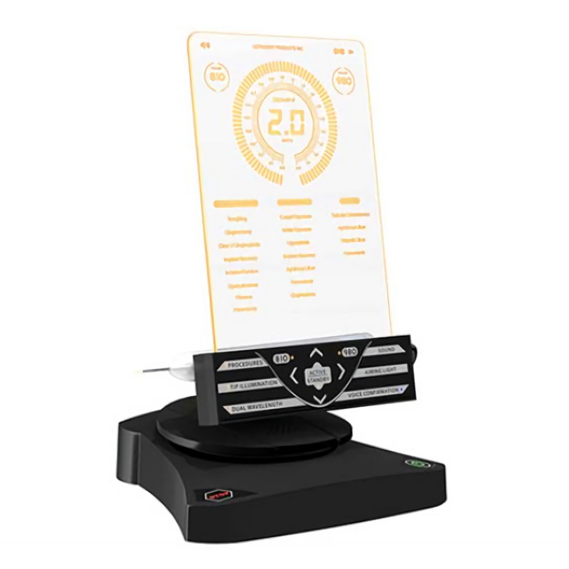 Su innovadora pantalla diseñada con más de un 80% de transparencia e inclinada para facilitar la visión desde cualquier punto, posee una sencilla interfaz con 20 procedimientos preestablecidos en tres categorías: Odontología general, Ortodoncia e Higiene.