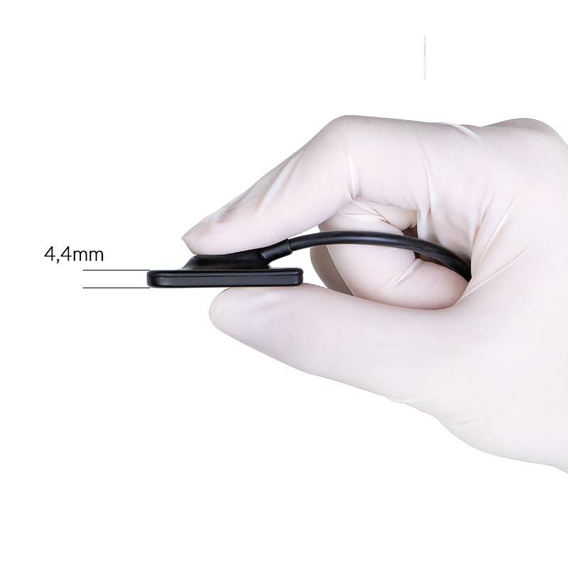 El captador de rayos X Woodpecker es ultra fino, 4,4 mm y presenta sus bordes curvos para una mejor adaptabilidad a la anatomía de la cavidad bucal, lo que hace que resulte cómodo para los pacientes y a la vez facilite la labor al profesional.