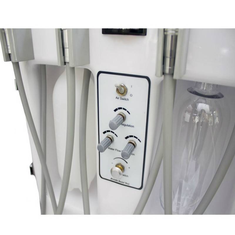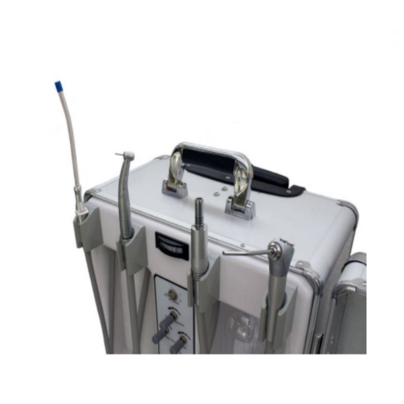 El cuerpo de esta unidad dental transportable está fabricado en aluminio. Material resistente a la corrosión y al agua, lo que alargará considerablemente la vida de la unidad.