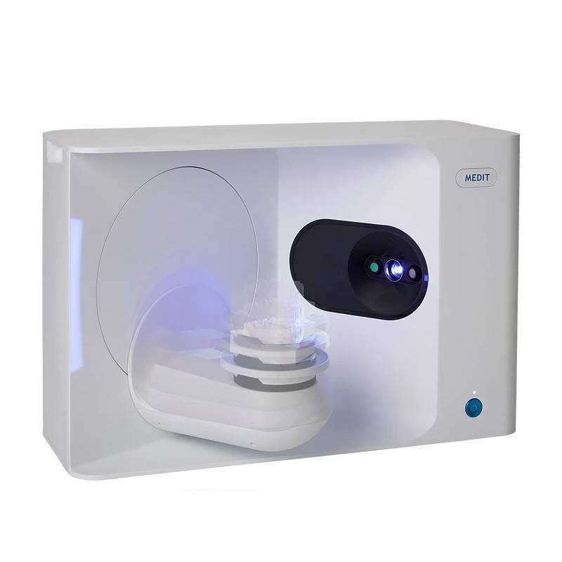 Este escáner de laboratorio dental Medit utiliza tecnología LED azul que permite un escaneo rápido con una elevada precisión de 7 µm pudiendo escanear una arco completo en 12 segundos.