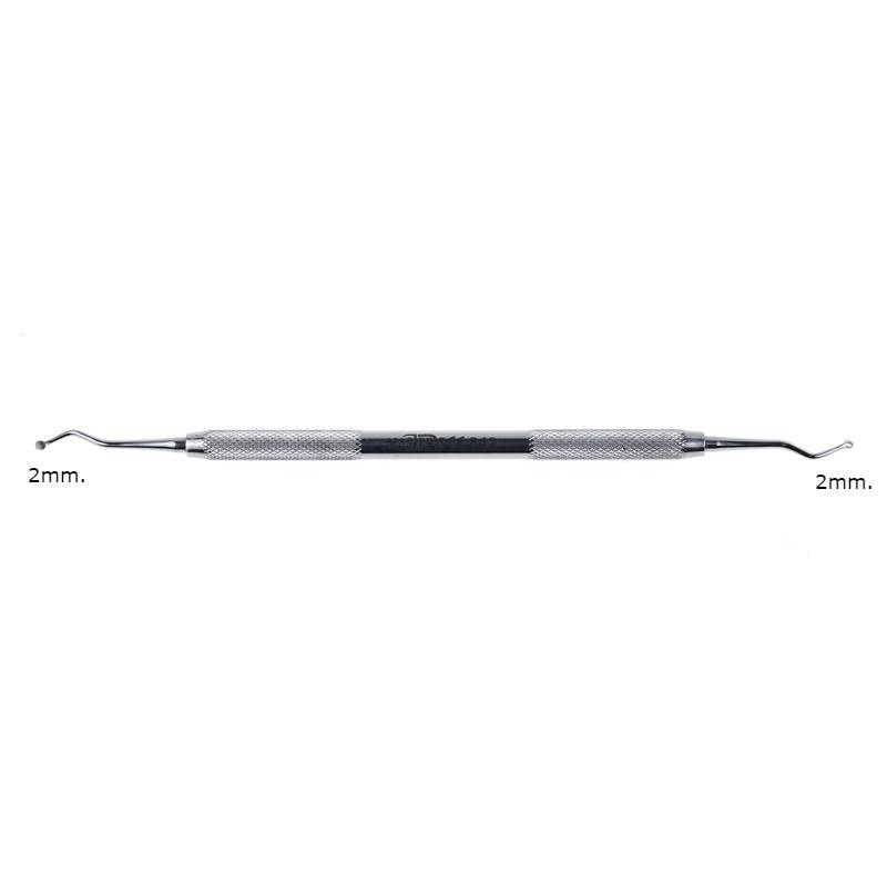 - Excavador de doble parte activa para eliminar caries y cálculos.
