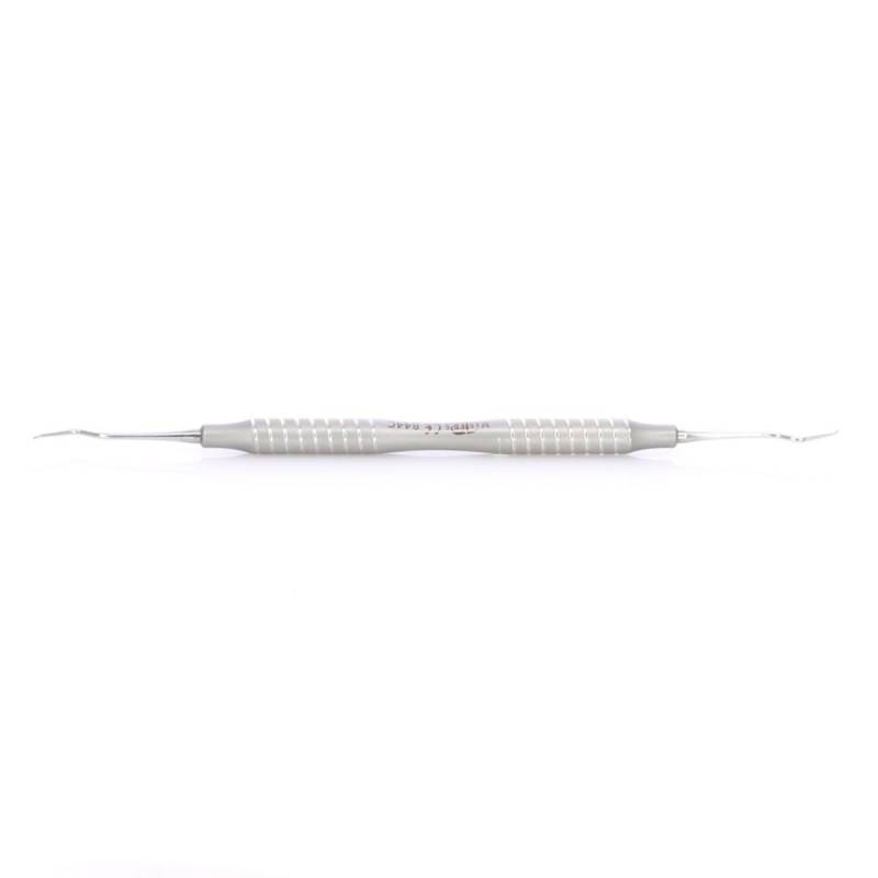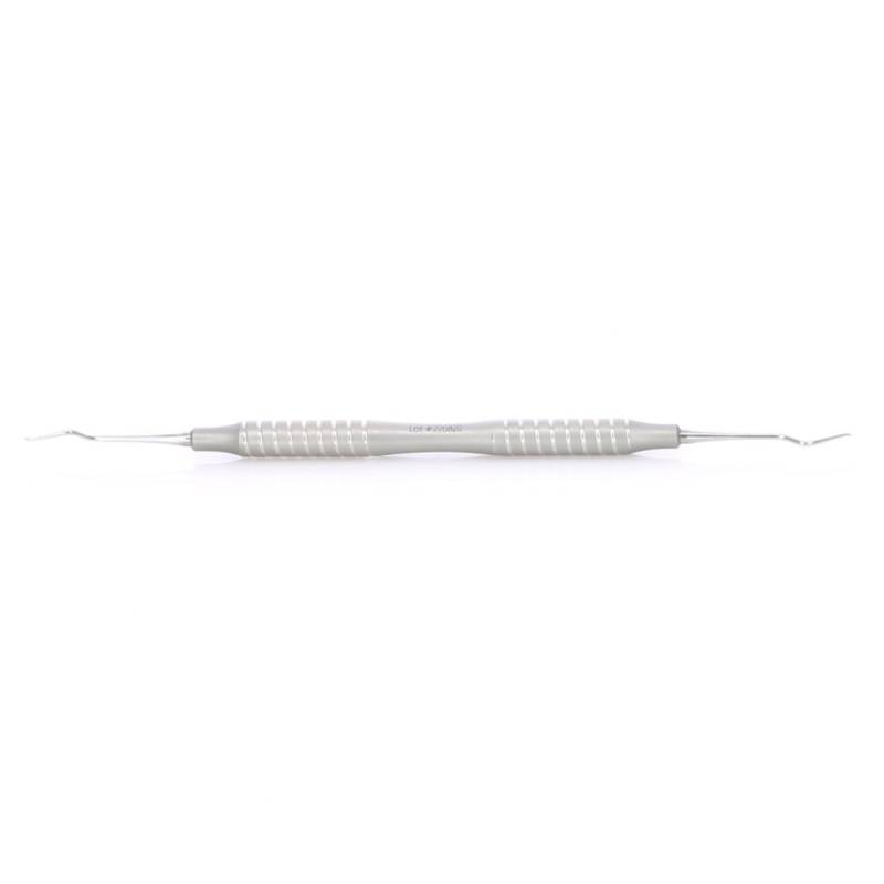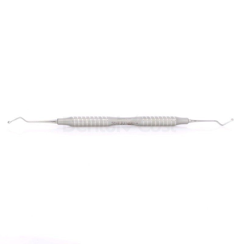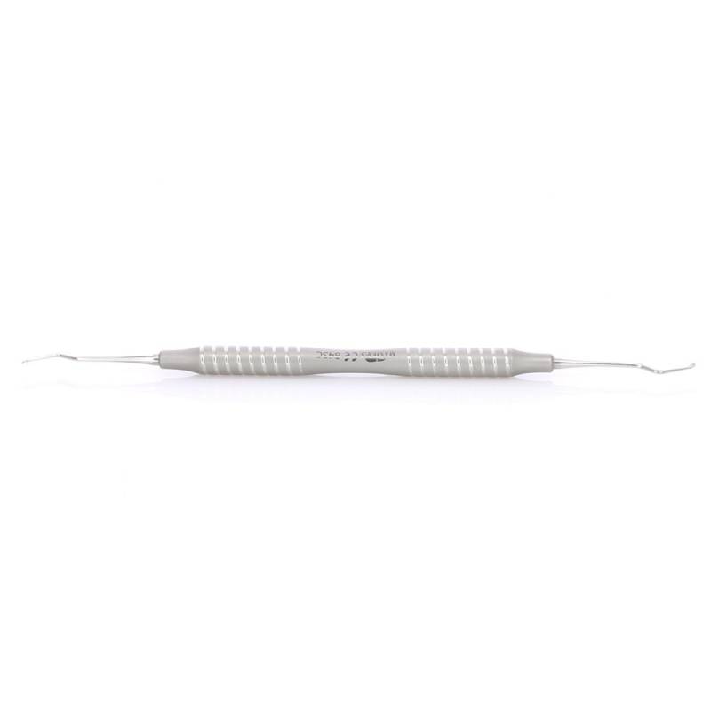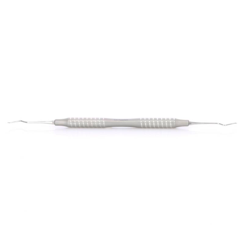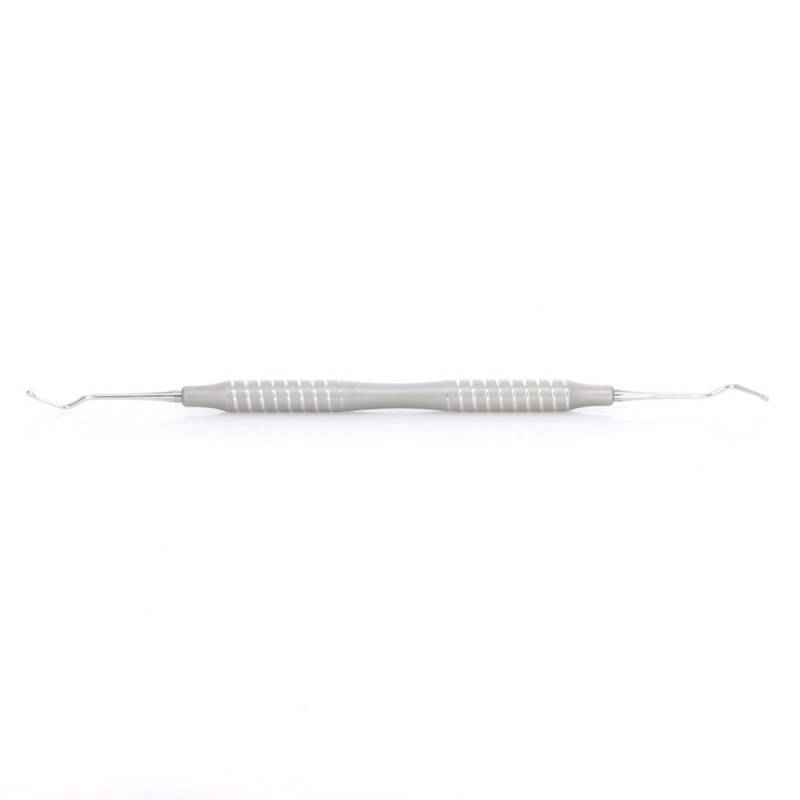 - Excavador de doble parte activa para eliminar caries y cálculos.