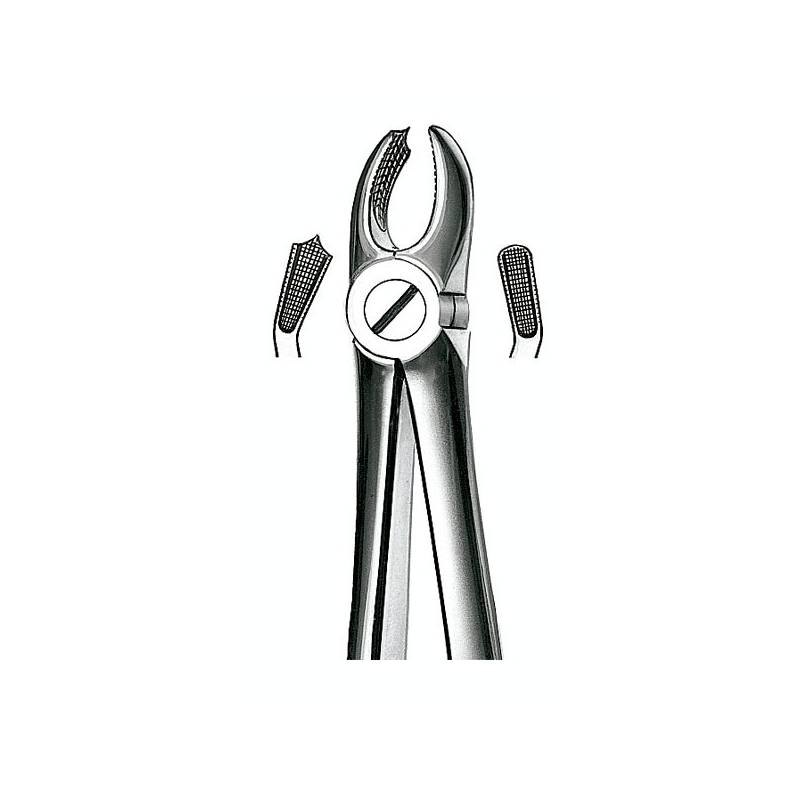 - Fórceps de acero para extracción molar superior izquierdo.