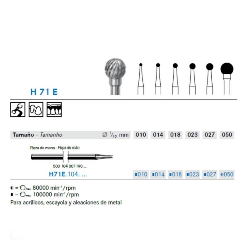 Fresa Carburo H71E.104. Cortador Bola PM Laboratorio 1 unidad Komet