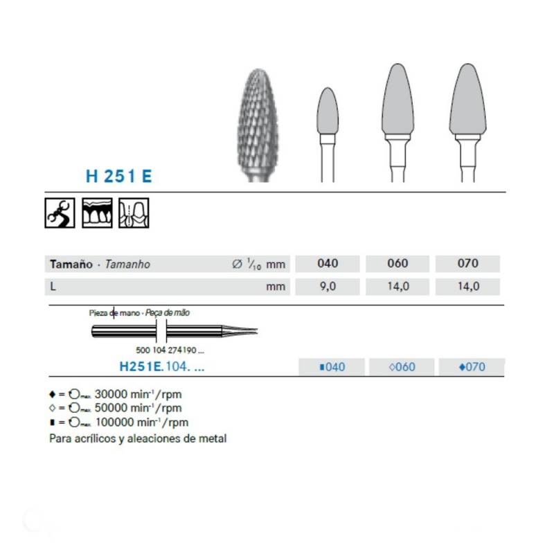 - Fresa cortadora H251E carburo, pieza de mano, laboratorio.