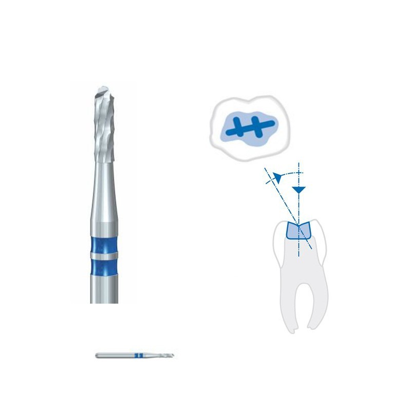 La fresa clínica H32 presenta un filo transversal en la parte frontal del instrumento que facilita el fresado axial minimizando la resistencia a la penetración.