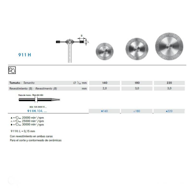 - Disco diamante 911H.104 para pieza de mano, laboratorio.