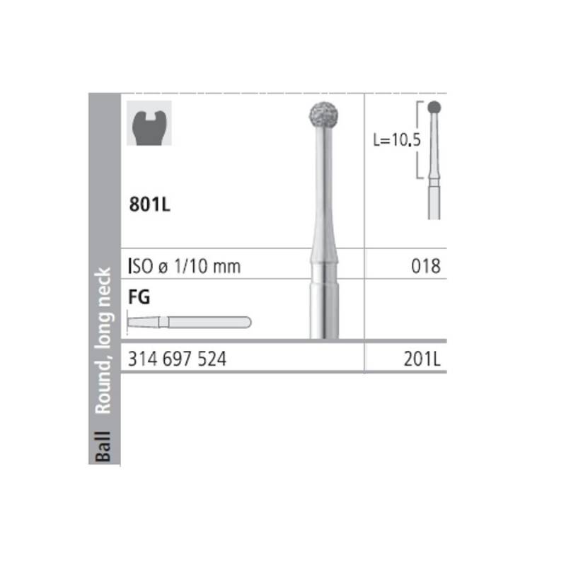 Fresas Diamante FG 201L Medio 801L-018 Bola Cuello Largo 6 uds Intensiv