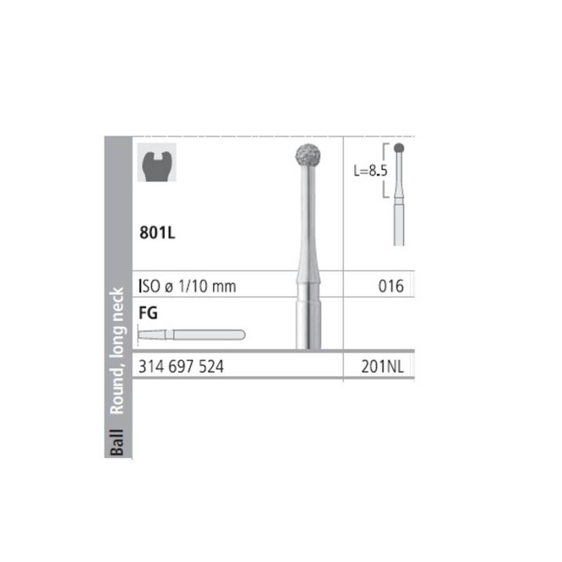 Fresas Diamante FG 201NL Grueso 801L-016 Bola Cuello Largo 6 uds Intensiv