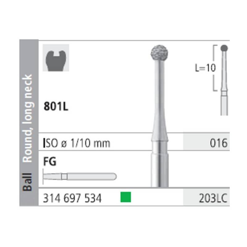 Fresas Diamante FG 203LC Grueso 801L-016 Bola Cuello Largo 6u Intensiv