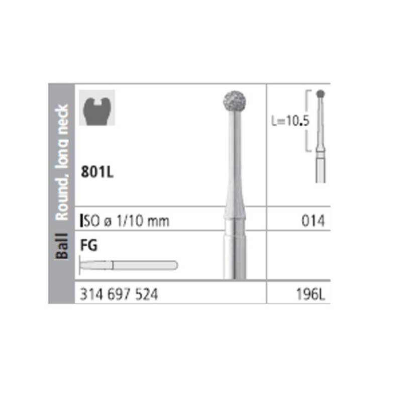Fresas Diamante FG 196L Medio 801L-014 Bola Cuello Largo 6u Intensiv