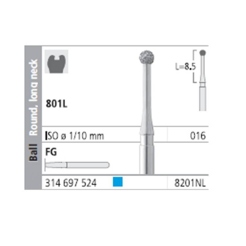 Fresas Diamante FG 8201NL Medio 801L-016 Bola Cuello Largo 6u Intensiv