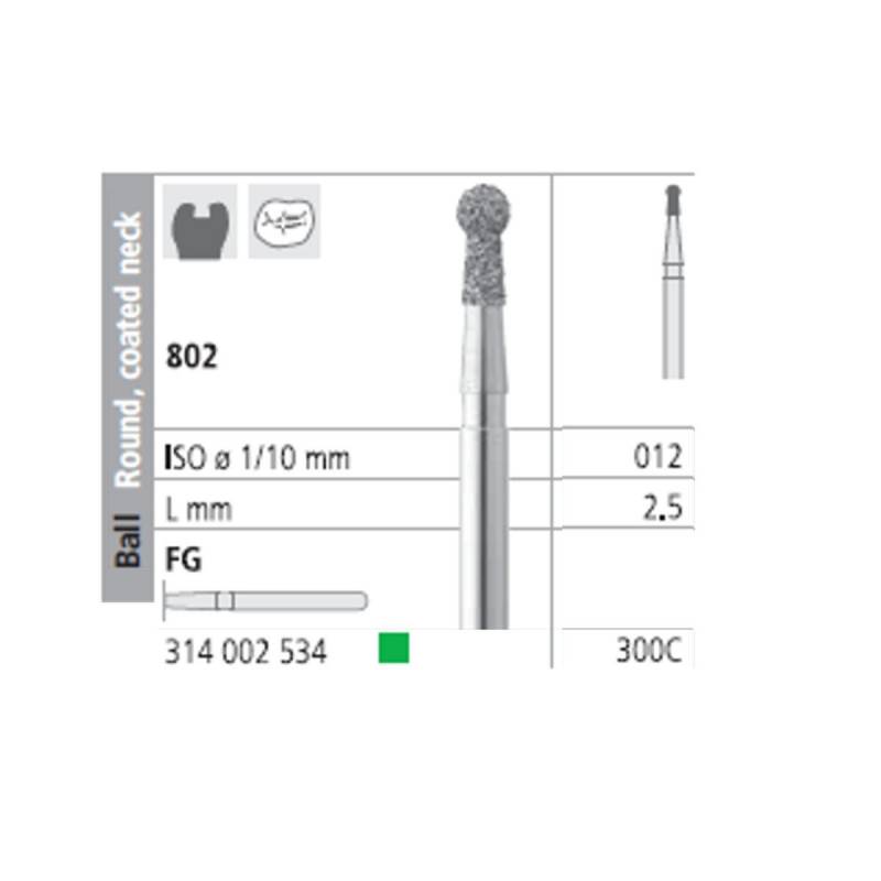 Fresas Diamante FG 300C Bola Cuello Recubierto, Grueso 802-012 Caja 6 unidades Intensiv