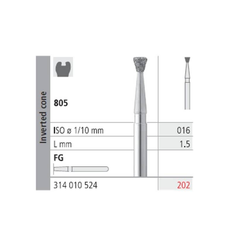 Fresas Diamante FG 202 Cono Invertido, Medio 805-016 Caja 6 unidades Intensiv