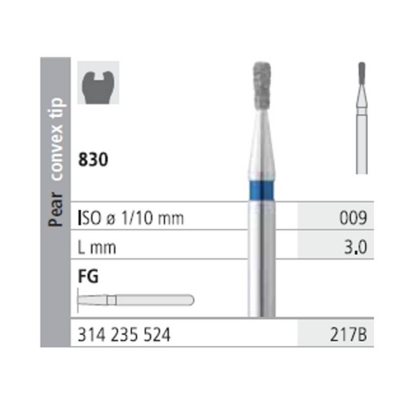 Fresas Diamante FG 217B Pera, Punta Convexa, Medio 830-009 L 3 Caja 6u Intensiv