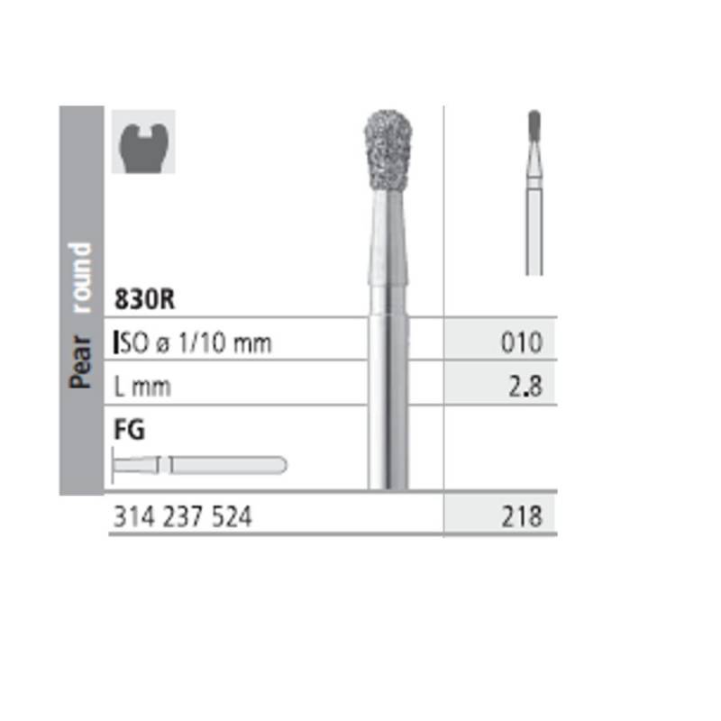 Fresas Diamante FG 218 Pera Redonda, Medio 830R-010 L2,8 Caja 6u Intensiv