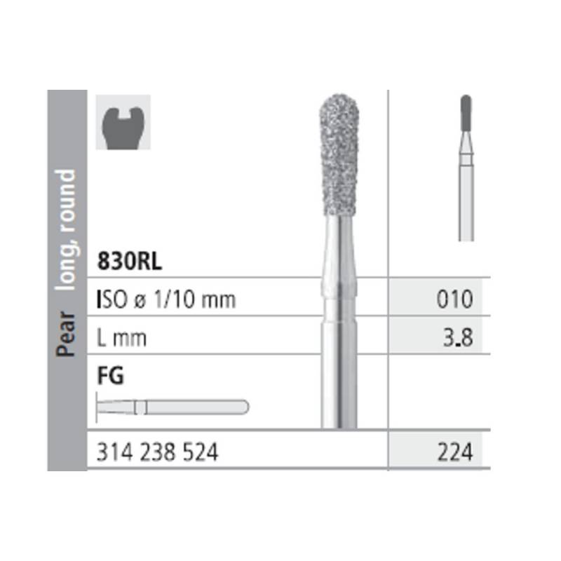 Fresas Diamante FG 224 Pera, Larga, Redonda, Medio 830RL-010 L3,8 Caja 6u Intensiv