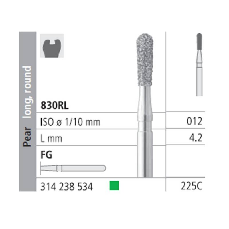 Fresas Diamante FG 225C Pera Larga Redonda, Grueso, Verde 830RL-012 L4,2 Caja 6u Intensiv