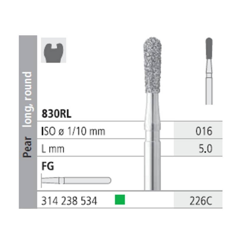 Fresas Diamante FG 226C Pera Larga Redonda, Grueso, Verde 830RL-016 L5 Caja 6u Intensiv