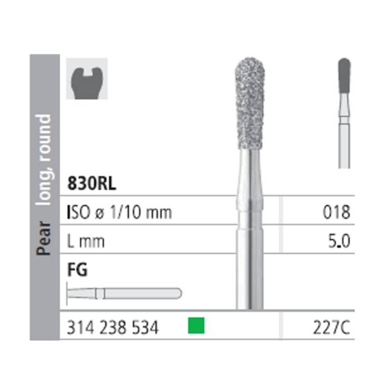 Fresas Diamante FG 227C Pera Larga Redonda, Grueso, Verde 830RL-018 L5 Caja 6u Intensiv
