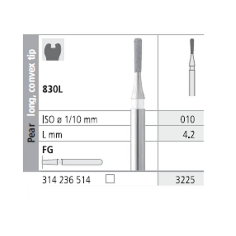 Fresas Diamante FG 3225 Pera, Larga, Punta Convexa, Fino 830L-010 L4,2 Caja 6u Intensiv