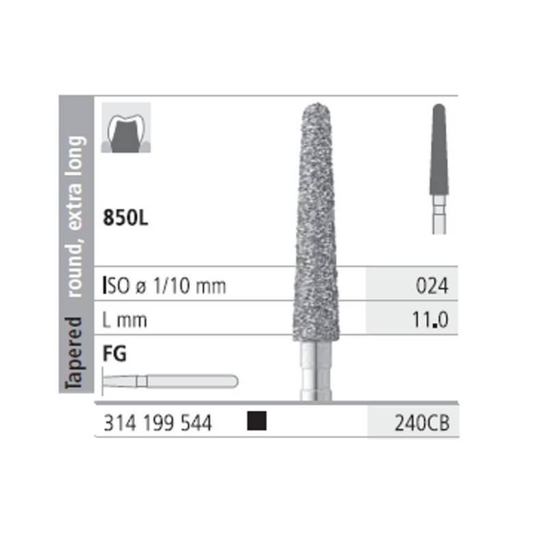 Fresas Diamante FG 240CB Cónico, Redondo, Extra Largo, Super Grueso 850L-024 L11 Caja 6u Intensiv