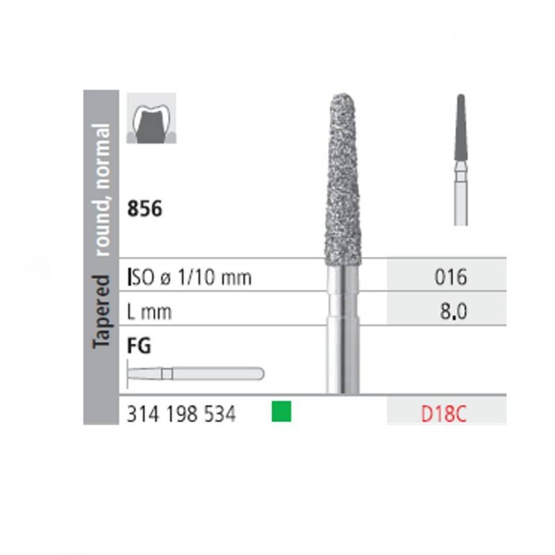 Fresas Diamante FG D18C Cónico, Redondo, Normal 856-016 Grueso L8 Caja 6u Intensiv