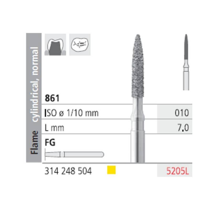Fresas Diamante FG 5205L Llama Cilíndrica, Normal 861-010 Extra Fino L7 Caja 6u Intensiv