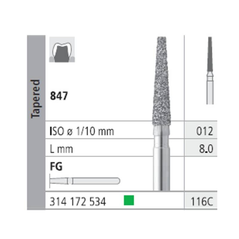Fresas Diamante FG 116C Cónico 847-012 Grueso, Verde L8 Caja 6u Intensiv