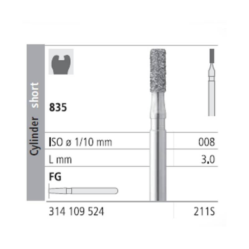 Fresas Diamante FG 211S Cilindro Corto 835-008 Medio L3 Caja 6 uds Intensiv