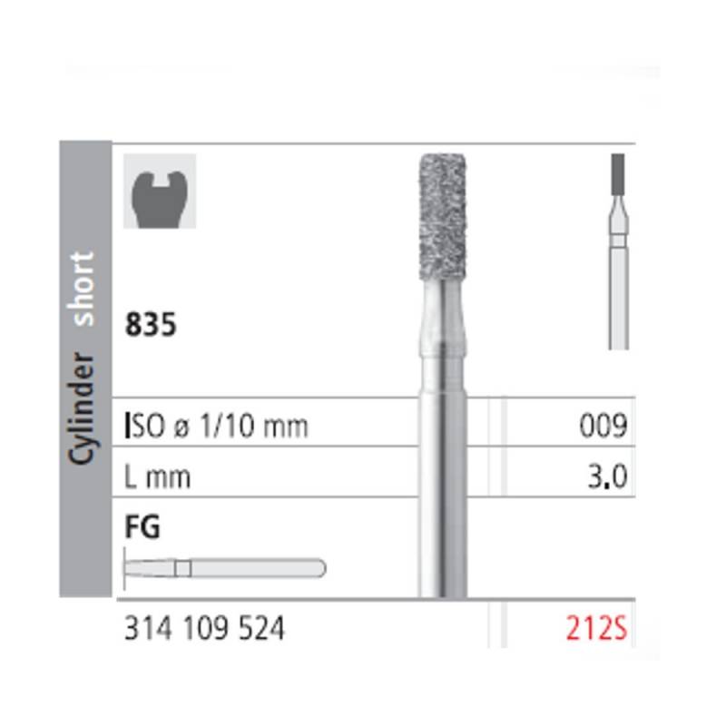 Fresas Diamante FG 212S Cilindro Corto 835-009 Medio L3 Caja 6 uds Intensiv