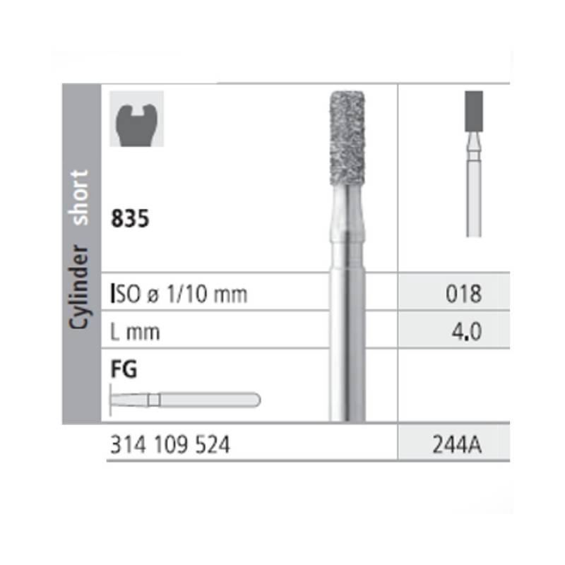 Fresas Diamante FG 244A Cilindro Corto 835-018 Medio L4 Caja 6 uds Intensiv