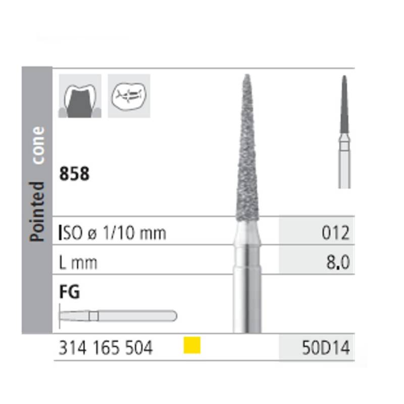 Fresas Diamante FG 50D14 Cono Punta 858-012 Extra Fino L8 mm Caja 6 uds Intensiv