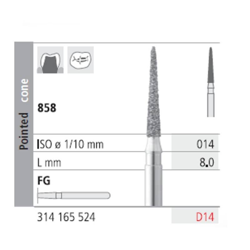 Fresas Diamante FG D14 Cono Punta 858-014 Medio L8 mm Caja 6 uds Intensiv